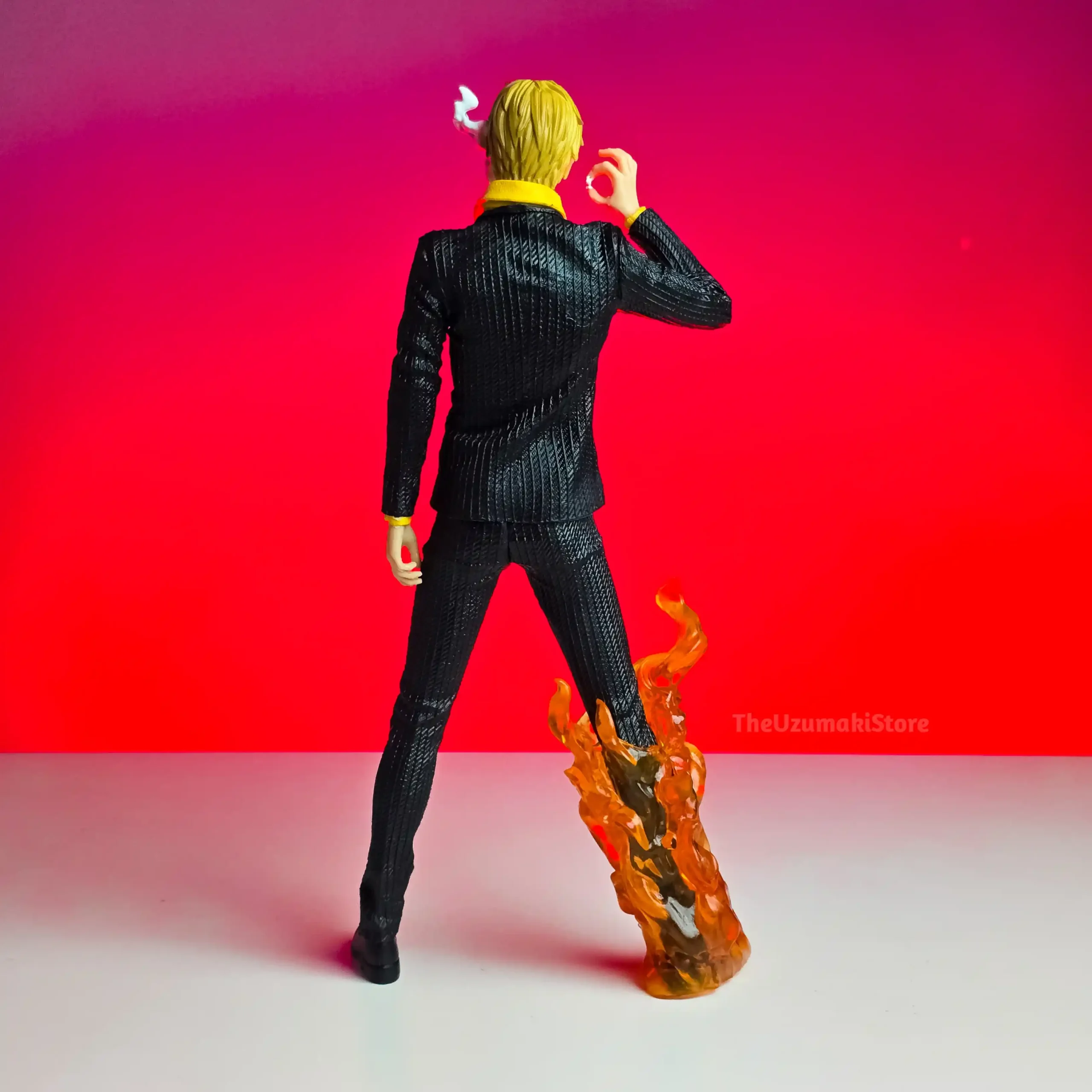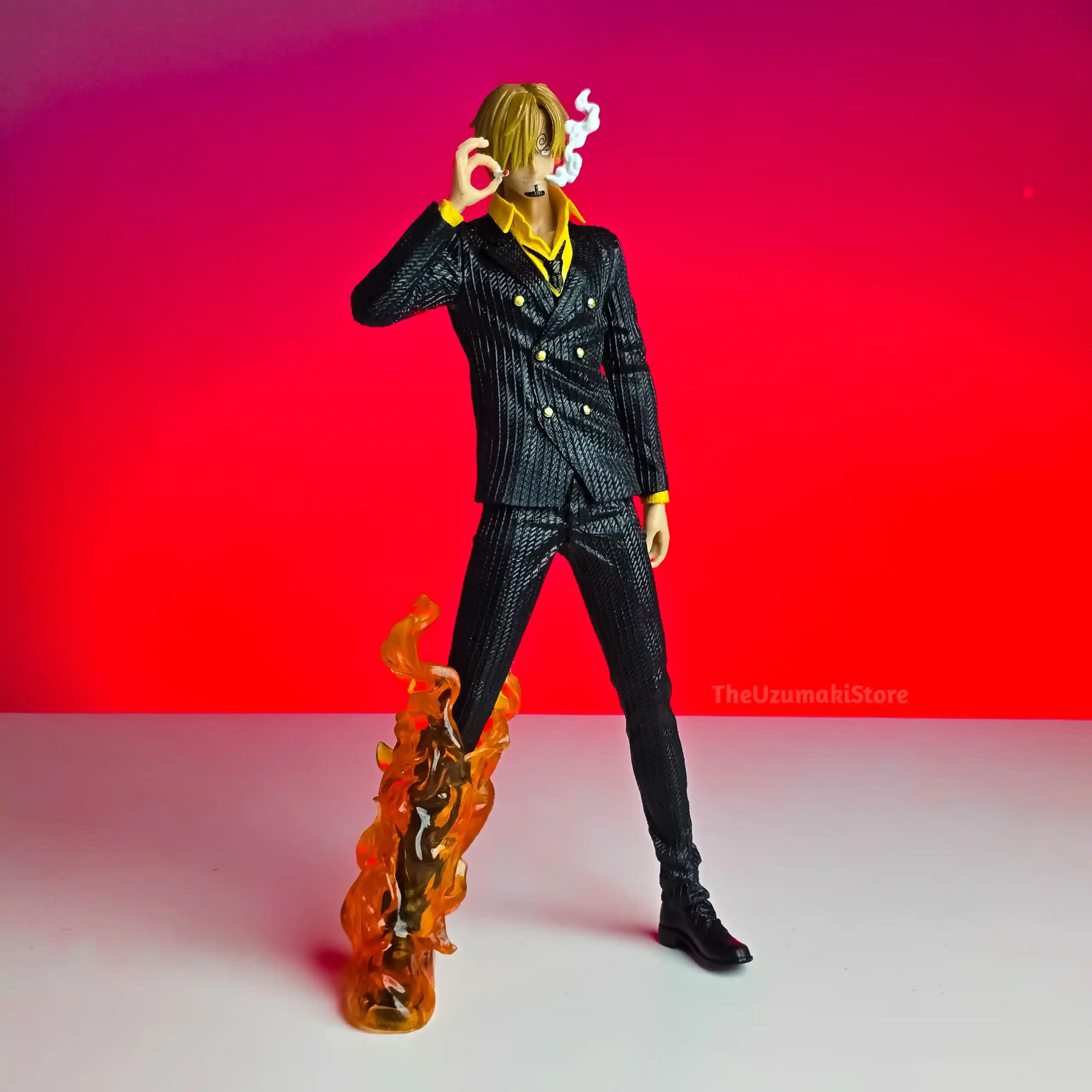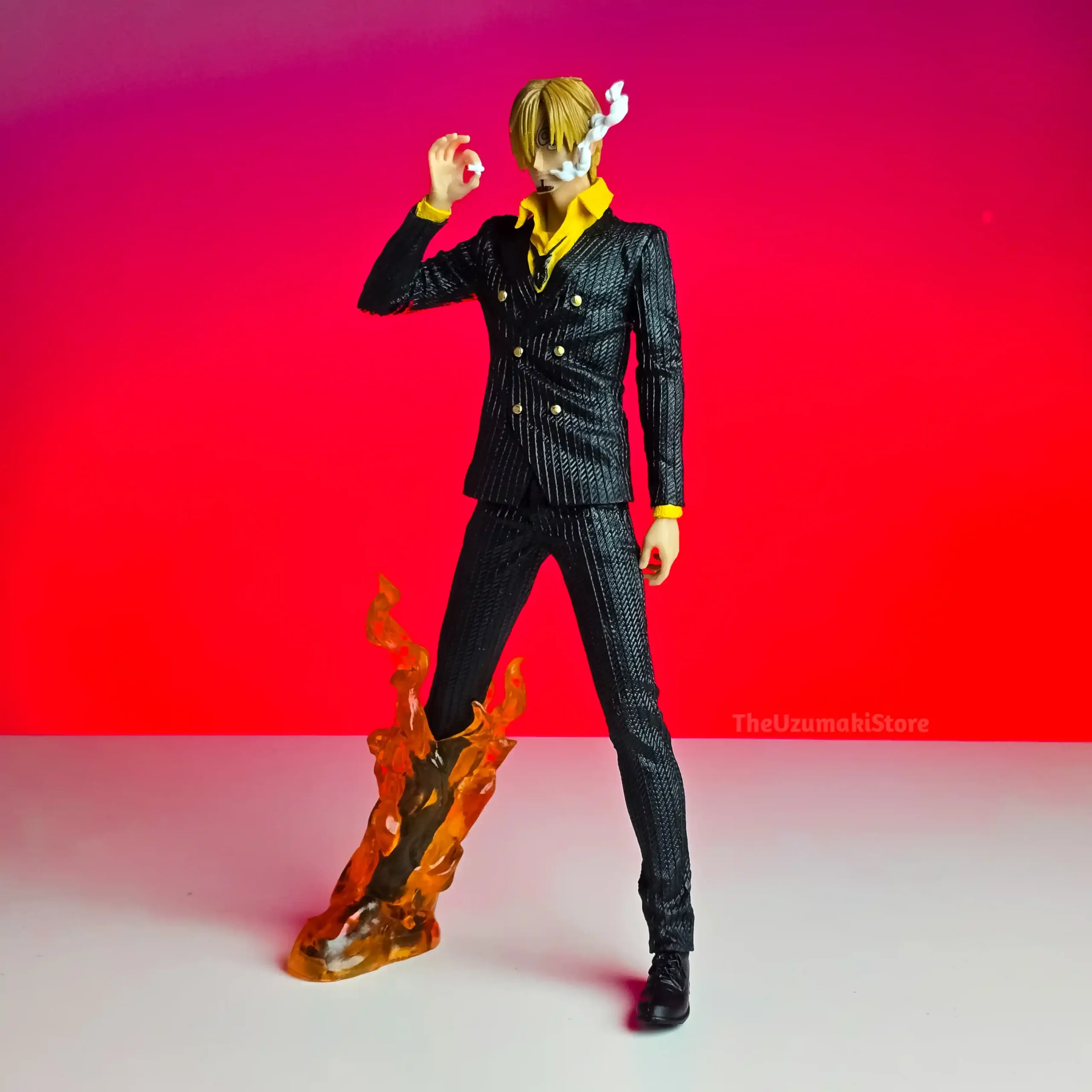 | Key Feature | Iconic black suit, smoking, and fiery leg effect. |